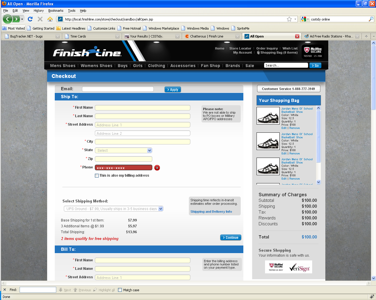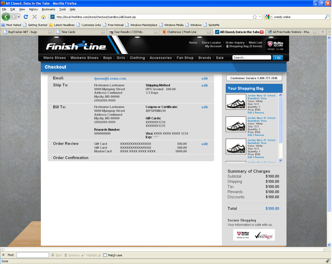 Implementation in HTML5/CSS3 of a Finish Line in-house design. Finish Line Single Screen Checkout system, tabs closed. Scroll down for tabs open. Click images to reveal fully. Also did some debugging and consulting.